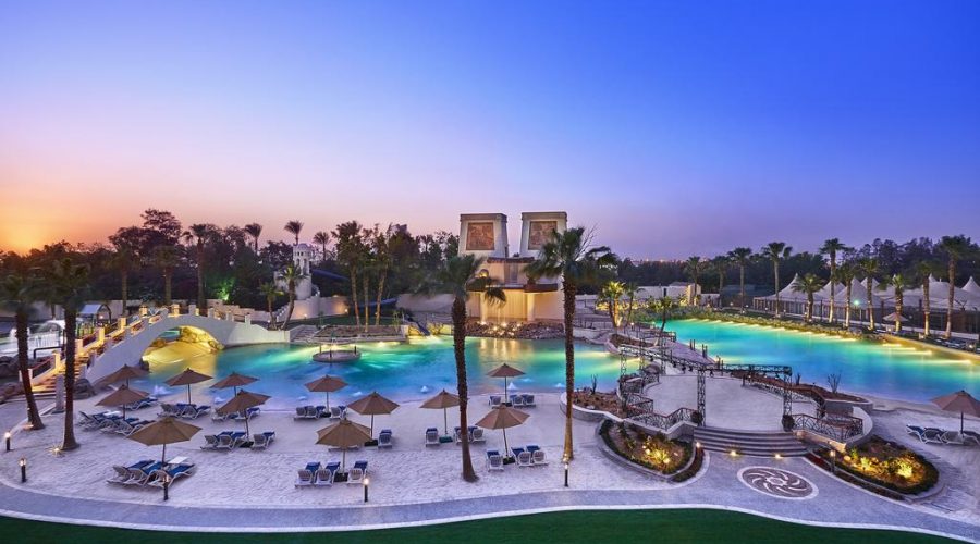 The hotel includes a private man-made , this 5-star resort has its own designed water park, , volleyball court, championship , kids club and spa. It is 10 minutes’ drive from Cairo Airport and Heliopolis.